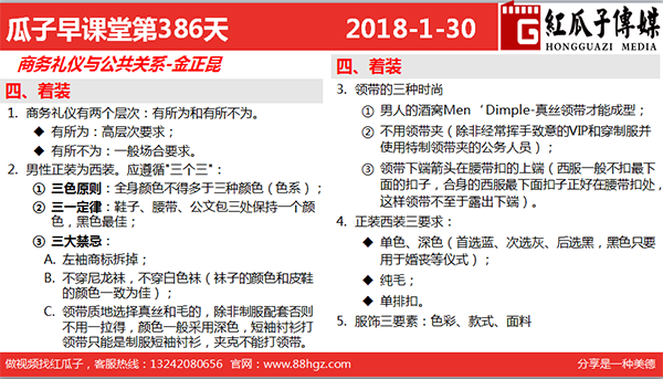 2. 男性正裝為西裝,應遵循“三個三”: