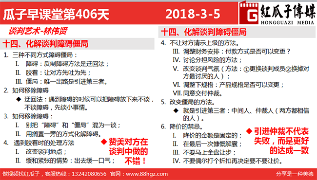 紅瓜子早課堂第406期:化解談判障礙僵局的方法