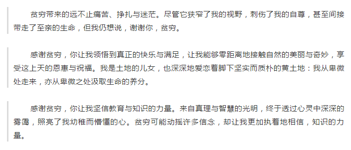 寫文章感謝貧窮,感動(dòng)了網(wǎng)友