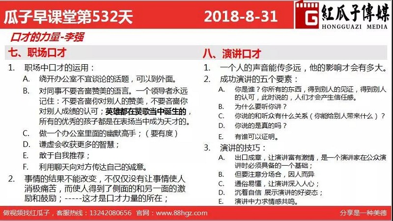 早課堂是由紅瓜子傳媒部分員工和喜歡學習提升自己的小伙伴組織的學習團隊,在每周一至周五早上7:40分開始至8:40進行一個60分鐘學習和自我提升的課堂。期待更多的小伙伴加入我們。