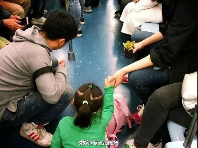 直到地鐵到站前,這位媽媽一直保持著這個動作。