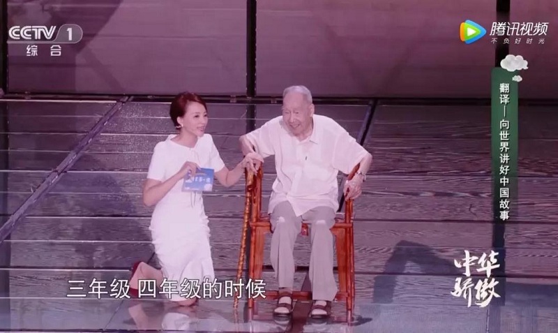 在一檔綜藝節目中,董卿為了照顧輪椅上96歲高齡的嘉賓,許淵沖老先生,她很自然的選擇了跪地采訪。