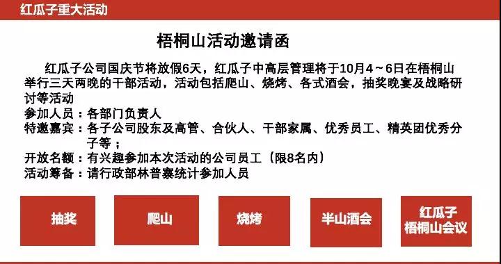 去年五月,我們也在這里召開紅瓜子戰略會議,一年多過去了,我們成長了,我們的方向更加明確,我們更加專業了,我們更加自信了,特別是這幾個月,我們的業績和盈利在不斷的創新,我們客戶對我們的好評也在不斷的增加,我們越來越棒了,這些來之不易的成績跟我們幕后的家屬分不開的,在這里,我們要特別感謝我們家屬的理解和付出,感恩你們臺前幕后的支持!