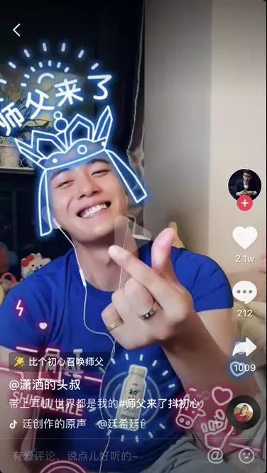 初心酸奶根據(jù)品牌調(diào)性甄選KOL,集結(jié)全國11個城市的顏值、萌寵、搞笑、走心等34位抖音達人強勢共創(chuàng)挑戰(zhàn)賽話題內(nèi)容,發(fā)布創(chuàng)意帶貨視頻,以“品牌+KOL”雙線產(chǎn)出內(nèi)容為爆破點,拉開挑戰(zhàn)賽序幕。其中粉絲480W+的達人“在下鐵頭阿彪”,讓萌寵作為情感大師在線解難,幽默地賦予了師父另一含義;舞蹈男團鐵頭兄弟則與小孩尬舞,完美契合“人人皆可為師”的主題。