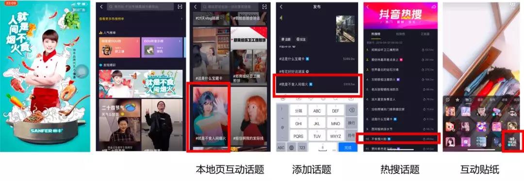 抖音挑戰賽還助力城市品牌搭建全鏈路營銷體系,實現從概念到最終轉化落地。首先利用開屏、本地頁互動話題、熱搜話題及互動貼紙等實現全鏈路覆蓋用戶路徑,盡可能增加曝光范圍;其次通過超級首位廣告TopView及企業藍V,可以最大化提升品牌記憶度,幫助品牌搭建內容營銷的主陣地。此外,通過帥豐集成灶等案例,抖音商業化還通過內容玩法和營銷場景的升級,全面擴充挑戰賽在區域的玩法,如精細化達人合作管理、定向區域貼紙、定制品牌專屬音樂等,引領互動體驗升級。