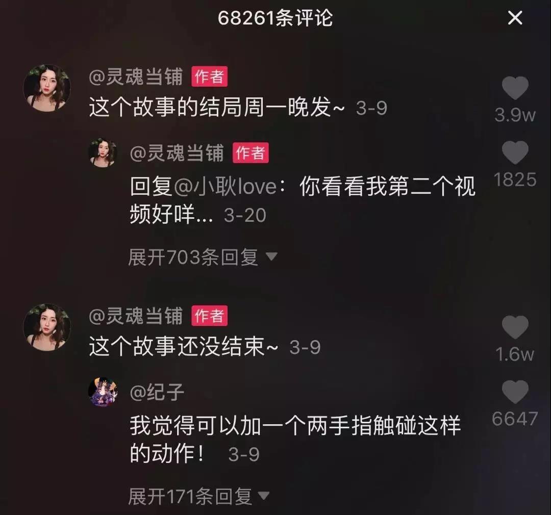 為了能減少影響,「靈魂當(dāng)鋪」通常一周更新兩個(gè)故事,并會(huì)在評(píng)論區(qū)與粉絲互動(dòng),同時(shí)公布下一支視頻的發(fā)布時(shí)間,也是為了給粉絲一個(gè)具體的等待時(shí)間。