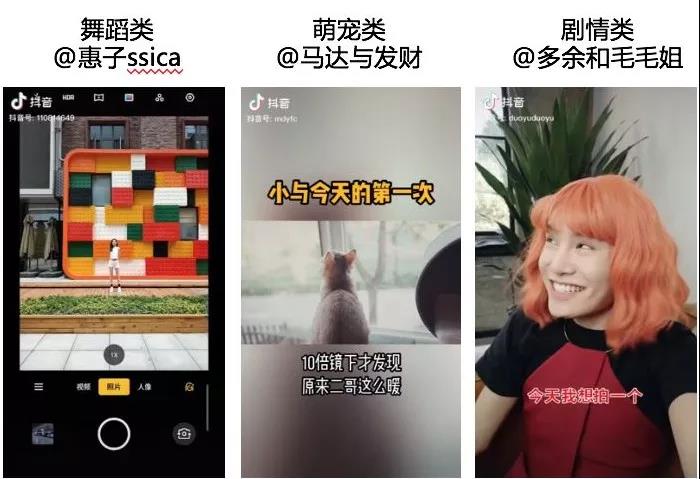 Part 2從PGC到UGC,共創賽制全面釋放創意潛力基于對抖音創作人的充分了解,OPPO找到了各個垂類的優質內容創作者,包括舞蹈類達人@惠子ssica、萌寵類達人@馬達與發財、搞笑類達人@多余和毛毛姐等,以他們的優質內容為引,帶動上百個KOL自發跟進,以自己的視角進行原生創作,多維度詮釋OPPO Reno #是時候放大招了 的產品變焦功能。