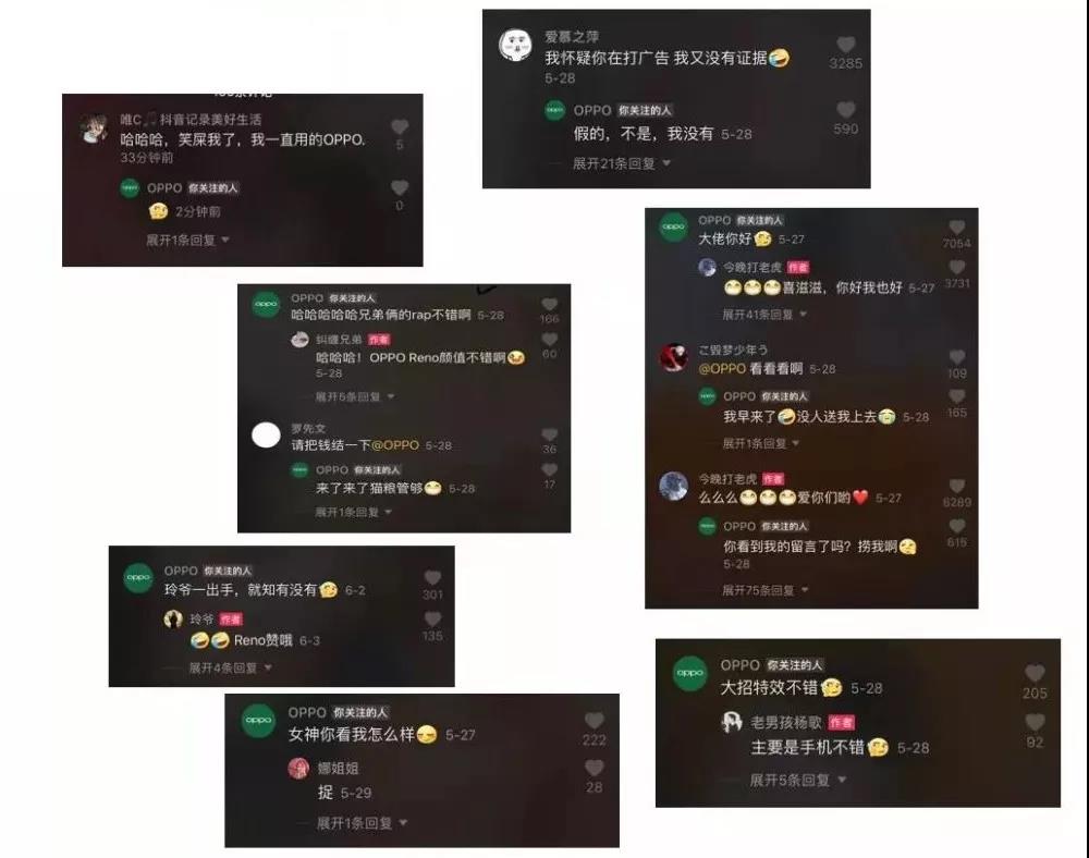 “女神你看看我怎么樣。”“哈哈哈哈哈兄弟倆的rap不錯啊。”在不少達人的作品下方,都可以找到OPPO第一時間回復的身影。