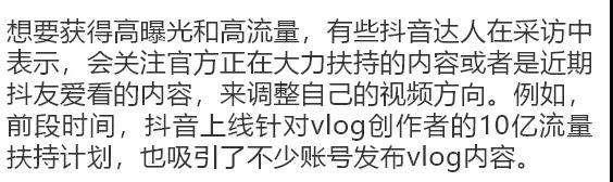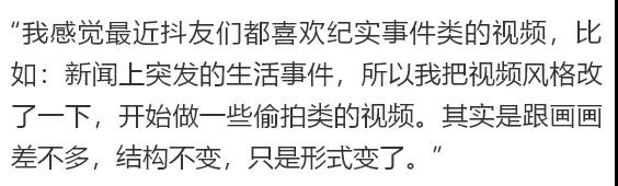 對此,不少抖音達人都提到幾點,一是優質內容,做能引發觀眾共鳴的視頻;二是多做系列視頻,給觀眾一定的期待;三是會根據粉絲的喜好,調整自己的視頻方向。