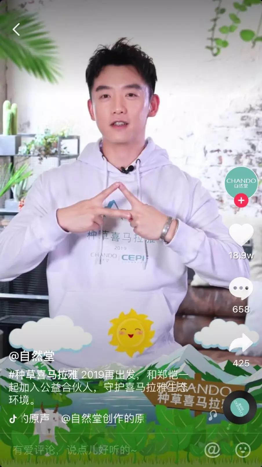 年輕能量為“種草喜馬拉雅”IP帶來(lái)了新的增長(zhǎng)動(dòng)力,在IP化的第三年,自然堂與抖音商業(yè)化展開(kāi)合作,以年輕人的語(yǔ)調(diào)打造了#種草喜馬拉雅#挑戰(zhàn)賽,并將鄭愷等明星及抖音達(dá)人作為傳播的能量源,激發(fā)起年輕人做公益的文化潮流,進(jìn)一步將造“種草喜馬拉雅”IP打造成了品牌公益icon。