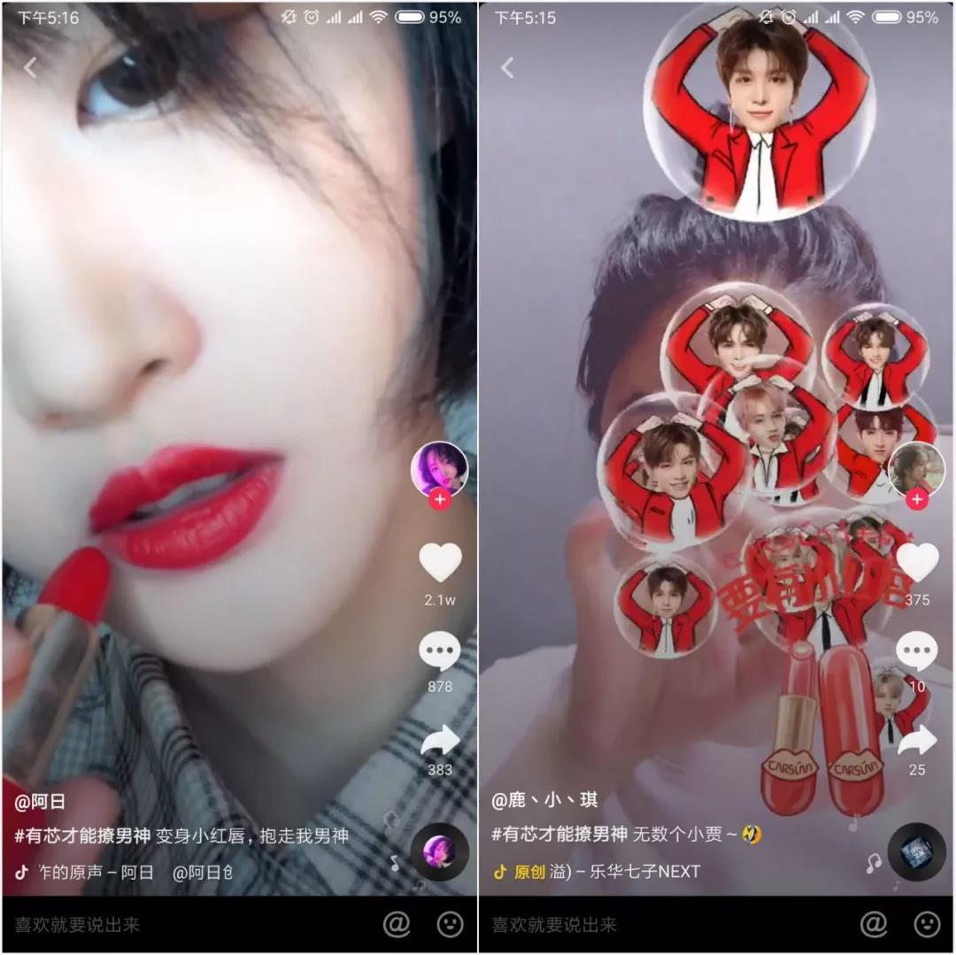 憑此亮眼數(shù)據(jù),卡姿蘭#有芯才能撩男神#挑戰(zhàn)賽強勢占據(jù)美妝行業(yè)商業(yè)化挑戰(zhàn)賽第一名。“小紅唇”唇膏一夜爆紅,成為新一代抖音好物。